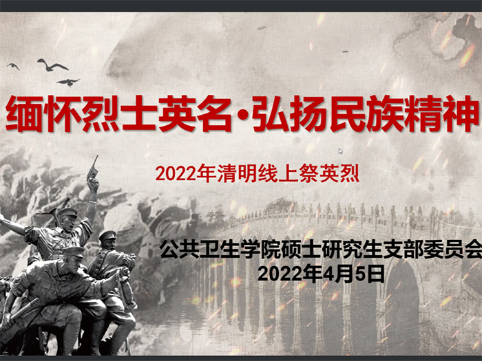 时值一年春草绿,又逢清明祭扫时。为缅怀革命烈士、传承红色基因、弘扬爱国主义精神,2022年4月5日上午,太阳集团tyc138硕士研究生党支部组织开展了清明网上祭英烈活动,通过网络祭扫等新形式表达对革命先烈的敬仰和追思,支部全体党员、入党积极分子参与了本次活动,活动由支部书记李涵同志主持。