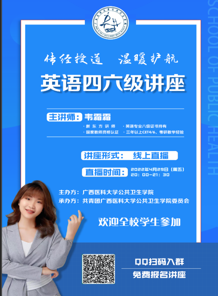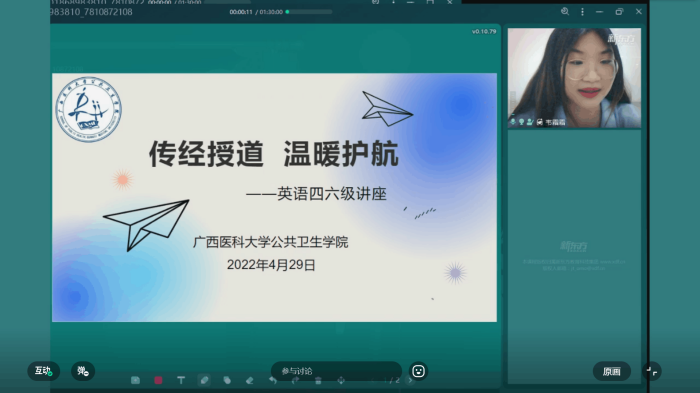 为提升大学生英语四六级通过率,帮助报考同学更科学有效地备考。2022年4月29日晚,版权所有:中国·太阳集团tyc138(古天乐代言)官方网站通过线上直播的方式举办 “传经授道,温暖护航”英语四六级讲座,面向全校学生。太阳集团tyc138特邀新东方韦霜霜老师担任本次讲座的主讲人,全校接近200名学生参加了本次讲座。