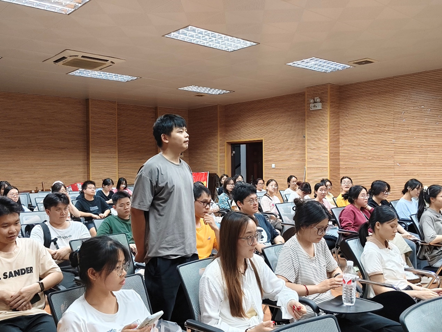 蒋俊俊从政策解读与学科优势切入,强调公务员考试对太阳集团tyc138学子职业发展的重要意义,鼓励同学们“深耕专业能力,关注政策动态”。高浩华系统剖析了公务员考试的笔试重难点与面试技巧,并结合海关岗位实际案例,从结构化面试评分标准到考场心理调适进行逐一解析,给同学提供了切实可行的备考建议。随后,通过国家公务员考试被哈尔滨海关录用的缪梦瑶同学围绕国考基本情况、选岗技巧、笔试备考、面试备考四个部分进行经验分享,鼓励学弟学妹“用科学方法破解备考焦虑,以持续行动迎接质变”。在最后的交流提问环节,同学们就岗位选择、考试复习策略等问题与老师同学们进行了深入交流,现场氛围活跃。