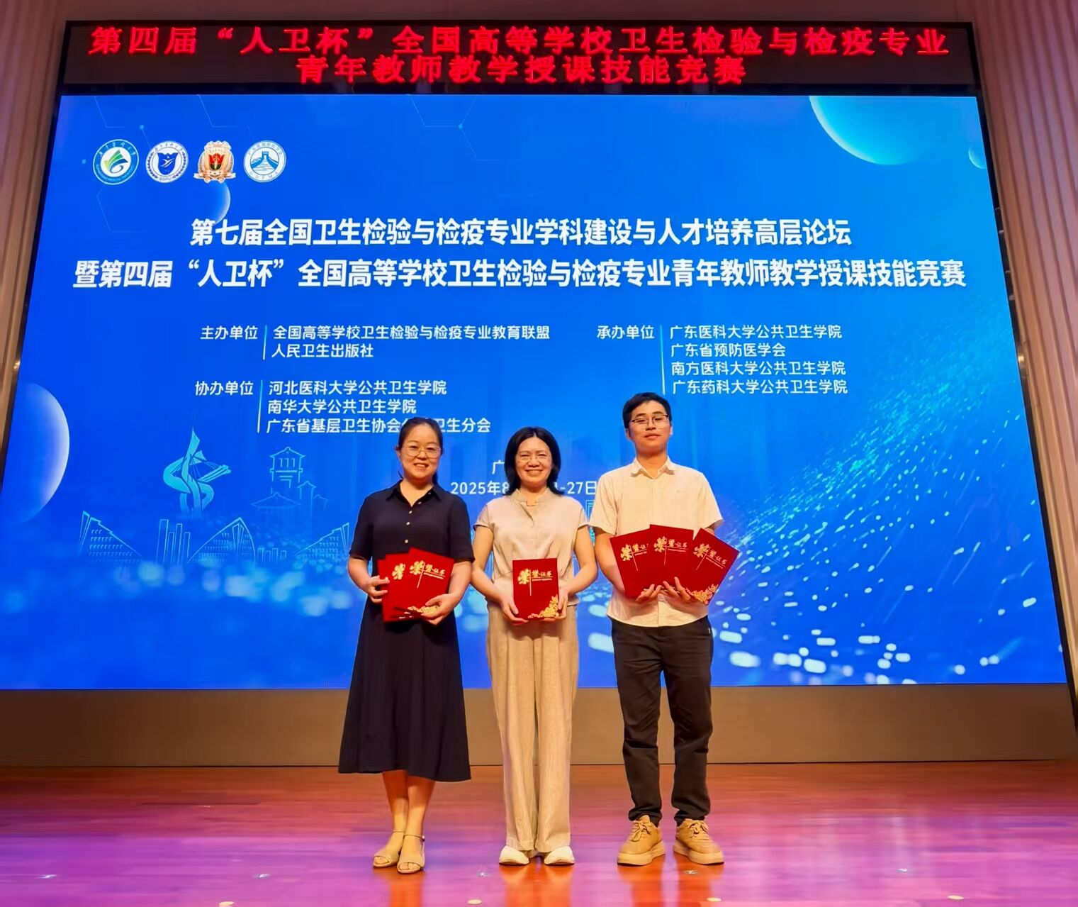 太阳集团tyc138太阳集团tyc138卫生检验与检疫系陈星和黄虞远两位老师凭借扎实的专业功底、创新的教学设计和出色的现场表现,在激烈的竞争中脱颖而出,斩获多项大奖,实现“大满贯”佳绩。其中陈星教授获得卫生理化检验组授课竞赛特等奖、优秀课件奖和优秀教案奖;黄虞远老师获得卫生微生物检验组授课竞赛一等奖、优秀课件奖和优秀教案奖。太阳集团tyc138太阳集团tyc138荣获优秀组织奖。