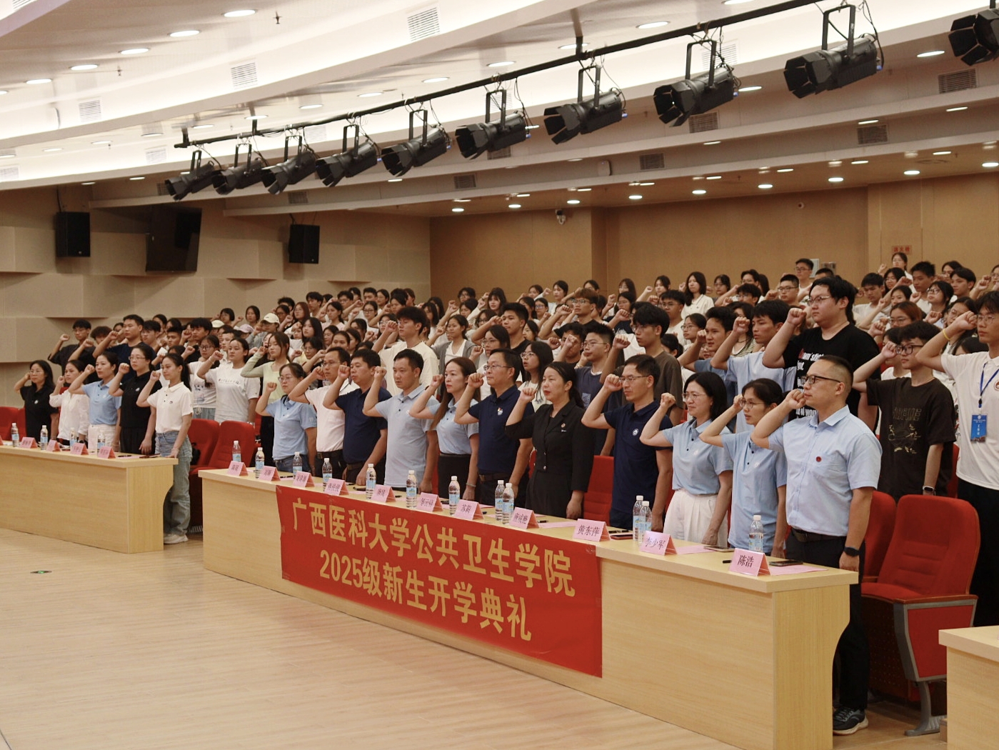 大会在庄严的国歌声中拉开帷幕。首先,苏莉院长对2025级新同学的到来表示热烈欢迎,同时提出了三点期望:一要筑牢学风根基,夯实专业本领;二要拥抱创新思维,借力智能时代;三要严守纪律底线,涵养医者仁心。新生代表张奕琳同学表示将勤学知识、笃行实践,以强国有我信念守护人民健康、践行时代使命。老生代表马瑞骢同学表示要不畏过往、勇于尝试,全面发展自身能力,在多方面历练中实现成长突破。教师代表陈浩老师鼓励同学们要砥砺前行、不忘初心,接受新挑战,在公卫书写属于自己的人生华章。